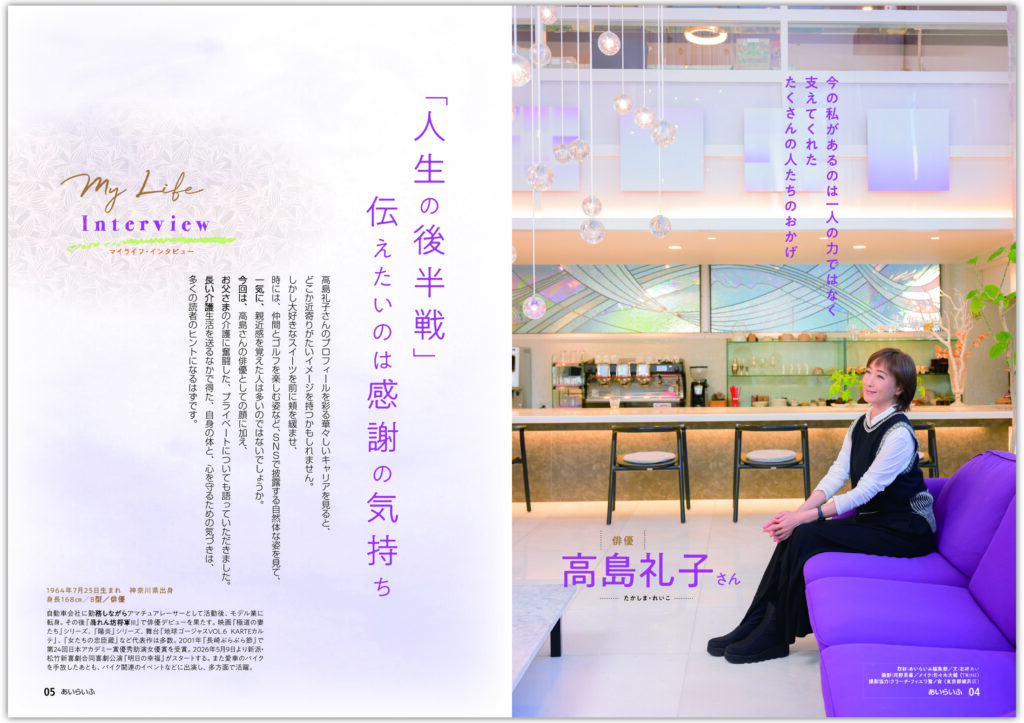 介護情報誌『あいらいふ』vol.182(2026年3月26日発行号)表紙・巻頭インタビューは、俳優の高島礼子さん